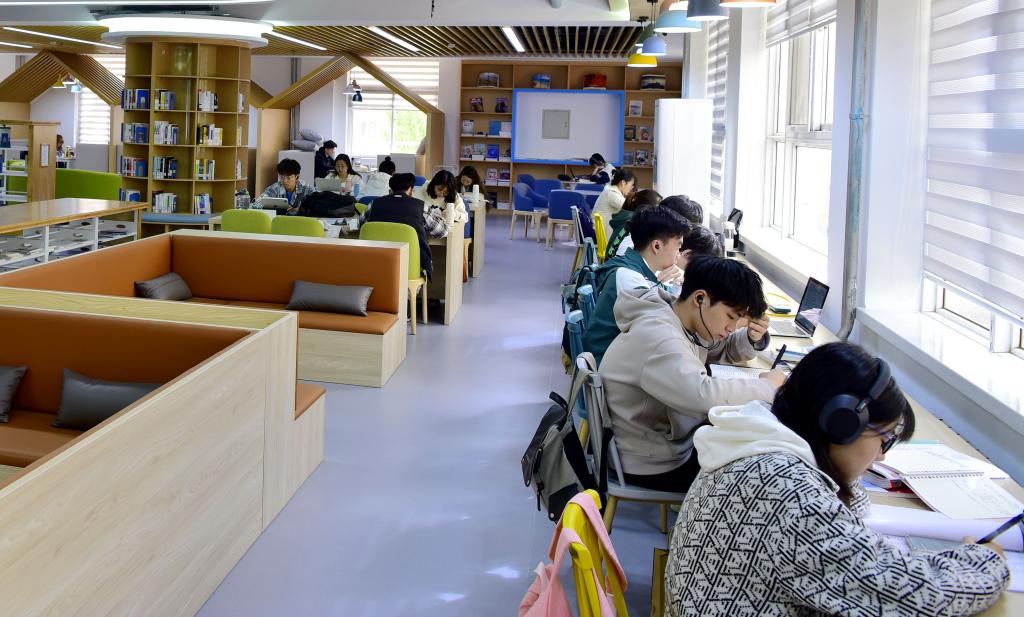 改造一新的图书馆,成了同学课余时间的最爱,