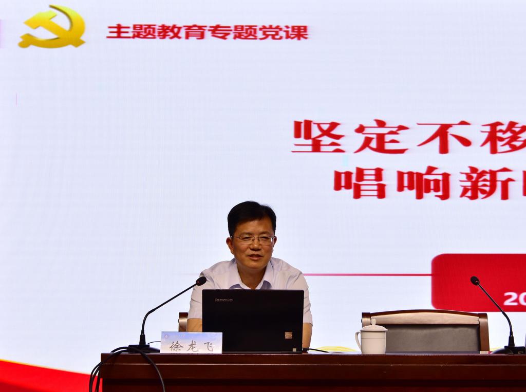 为进一步推动学习贯彻习近平新时代中国特色社会主义思想主题教育走深走实,加强毕业生党员教育,激励广大毕业生党员在新征程上坚守初心、勇担使命、再创佳绩,6月14日上午,校党委常委、副校长兼yl23455永利党委书记、管委主任徐龙飞在图书馆报告厅为2023届毕业生党员讲授题为“坚定不移听党话跟党走 唱响新时代青春之歌”的专题党课。校区党委副书记贾长响主持专题党课。