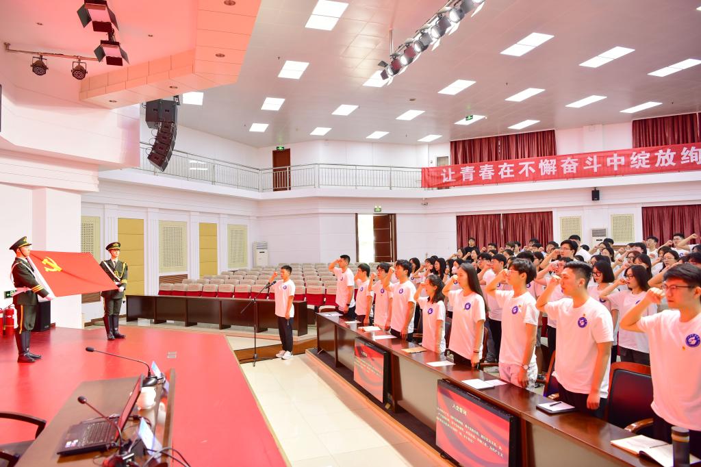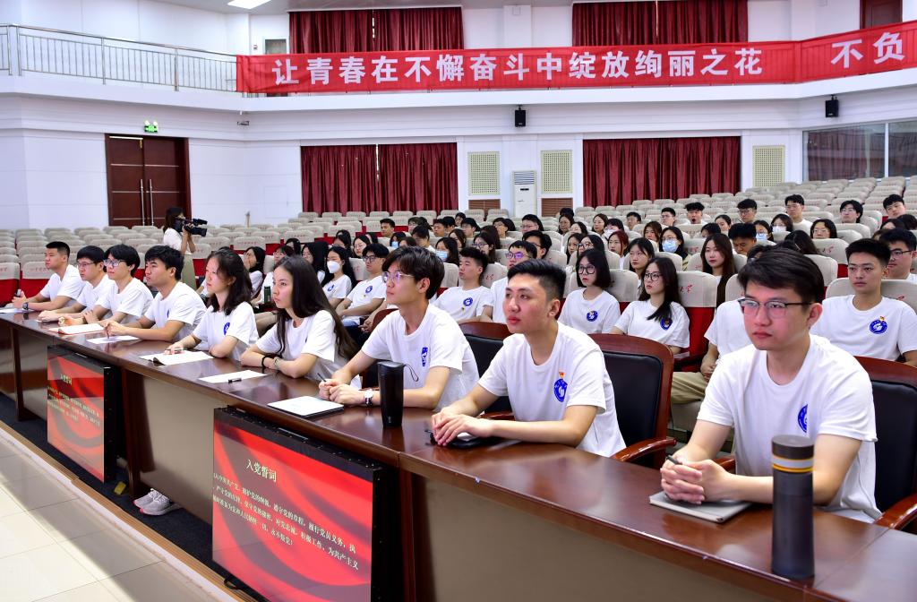 党课最后,全体毕业生党员面向党旗重温入党誓词,在铮铮誓言中铭记入党初心,坚定理想信念,践行使命担当。(摄影:孙雪琳)