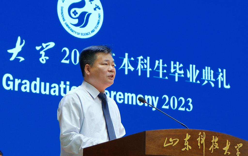 曾庆田表示母校永远是温馨的港湾,期待毕业生们捷报频传,期待毕业生们常回家看看,祝愿从科大启程、奔向五湖四海的2023届的校友们前程似锦,一帆风顺。