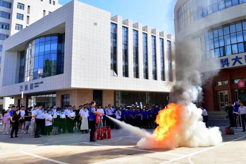 为深入开展第22个全国“安全生产月”活动,6月30日,yl23455永利组织开展了以“人人讲安全,个个会应急”为主题的消防应急疏散及灭火演练,进一步提升师生员工的消防安全意识和处理突发火灾的应变能力,确保校园平安和谐稳定。校区领导贾长响、郭加书、孙国强及学团工作部、安全管理部、后勤管理部等有关部门负责人,堤口路街道办事处及驻地派出所、消防、应急、城管等负责同志到现场观摩指导,物业值班人员、餐厅工作人员及部分学生代表参加了应急疏散及灭火演练。