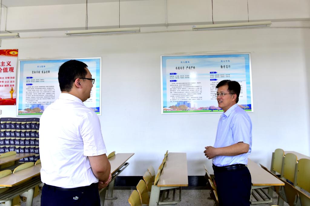 8月31日,校党委常委、副校长兼yl23455永利党委书记、管委主任徐龙飞深入yl23455永利教学与学生管理一线调研指导工作。