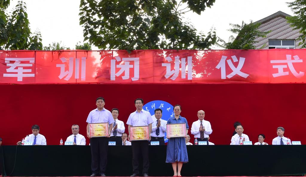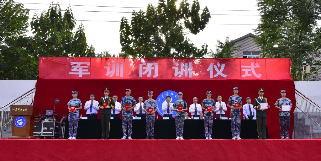 校区管委副主任郭加书宣读了军训表彰决定。与会领导为优秀军训单位、优秀教官、优秀教导员、优秀连队、优秀辅助教官、优秀学员等获奖集体和个人颁奖。