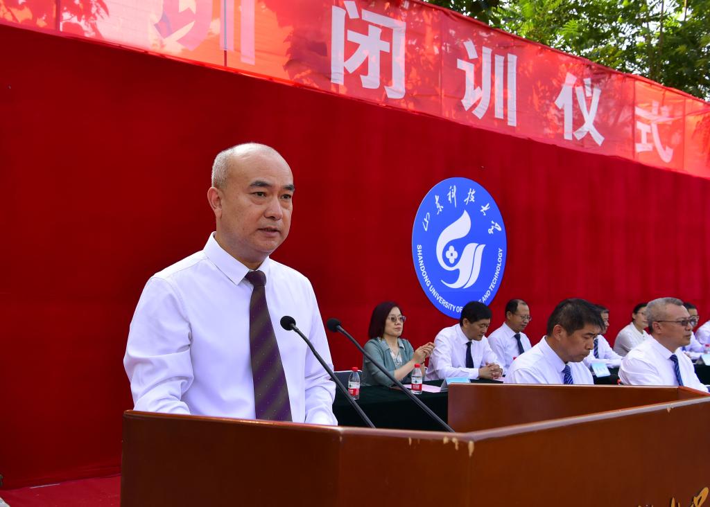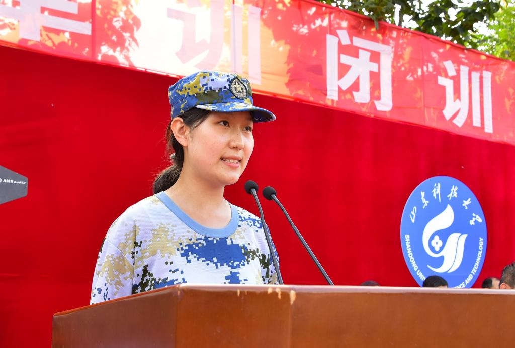 军训教官代表李腾强在发言中表达了对参训学生的肯定与祝福,新生代表姜欣怡分享了军训期间的感悟和收获,表达了刻苦勤奋、砥砺成才的决心。