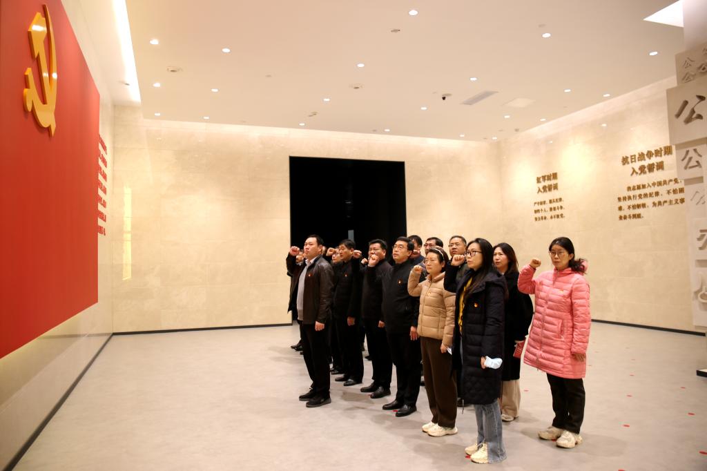 在宣誓厅,全体党员干部面向党旗庄严宣誓,重温入党誓词,感悟初心使命。在报告厅,集体观看了警示教育片《护航新征程-山东正风肃纪反腐2022》。