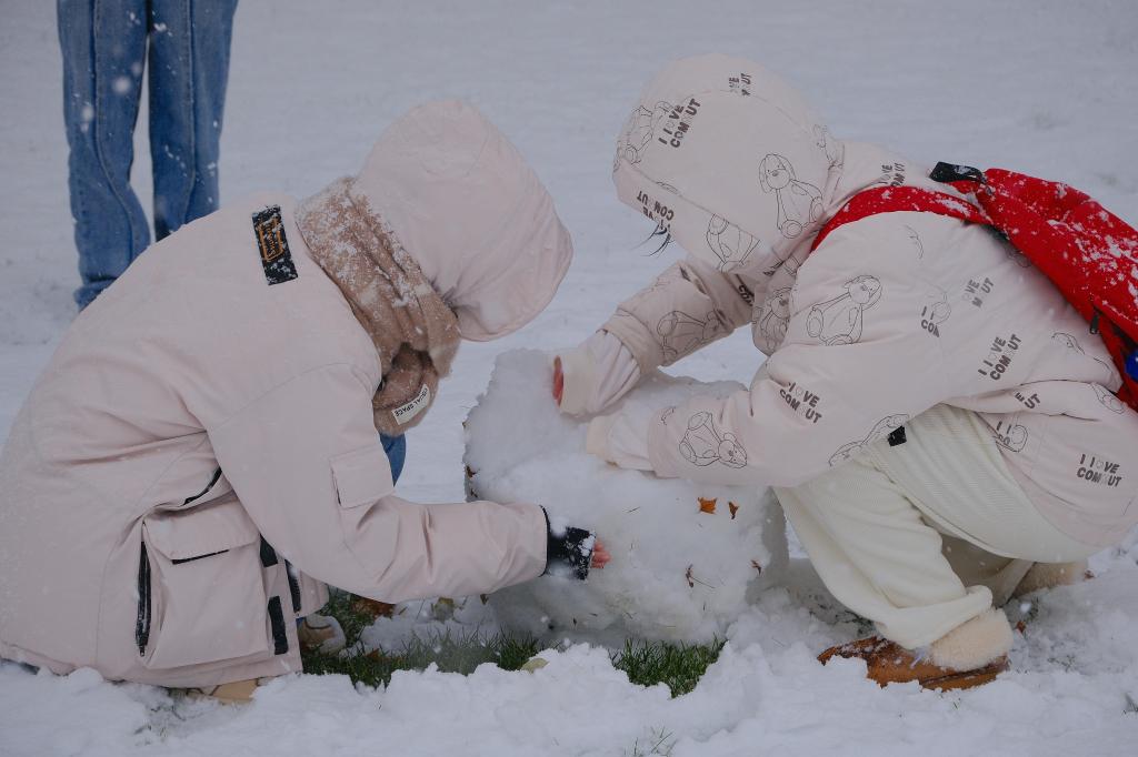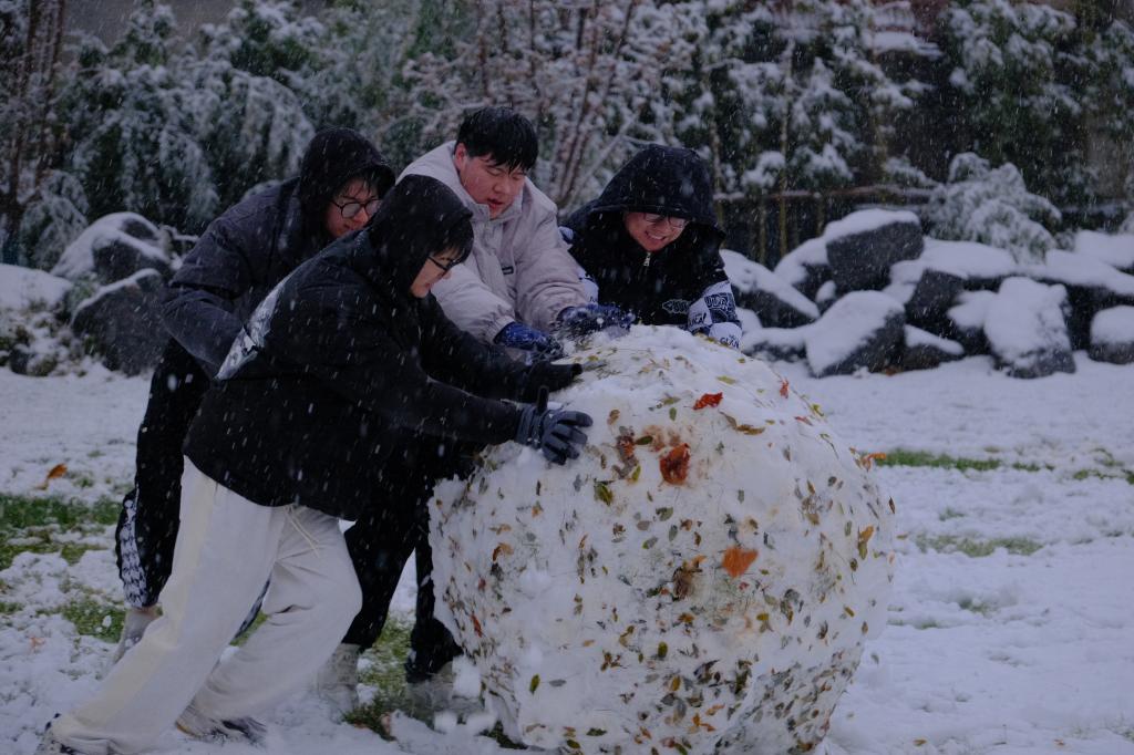 风雪余温,三两好友雪中嬉戏;