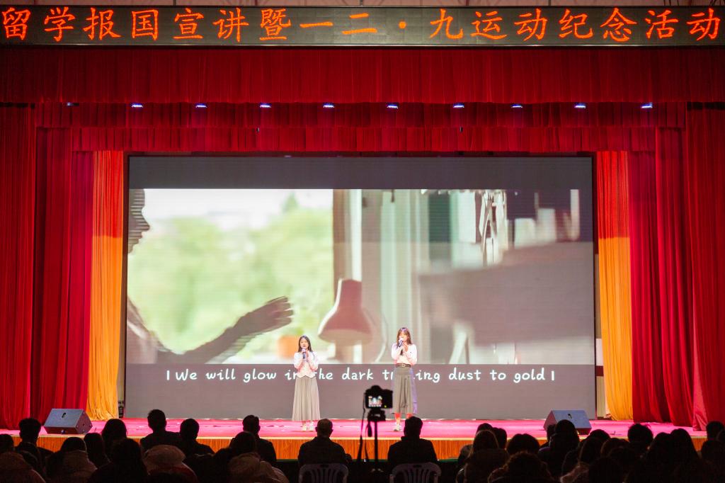 活动围绕“留学报国”主题,以声情并茂的演讲、激情饱满的朗诵、再现经典的情景剧展演等方式开展面对面、沉浸式宣讲,深入挖掘留学报国故事及其深厚的爱国主义精神。宣讲员从不同角度悉心选题撰稿,精心设计表现形式,以小切口、小故事,回顾往昔留学报国峥嵘岁月,抒发拳拳爱国之心与浓浓留学报国之情,诠释新时代强国复兴伟业使命担当,展示校区国际化人才大追求。一首“我爱你中国”将全场师生的激情点燃,引发歌颂祖国的情感共鸣。一场流利的英文演讲,在讲述革命青年打破旧世界、追求新生活的精彩故事中,展示了校区中外合作办学特色与成就。现场观众屠晓桐表示:“宣讲活动让我对家国情怀的理解更加深刻,寒假我将参加学校组织的国外高校学术与文化游学活动,届时我会珍惜学习机会,拓展国际视野,展现科大学子的形象,当好文化交流的使者。”