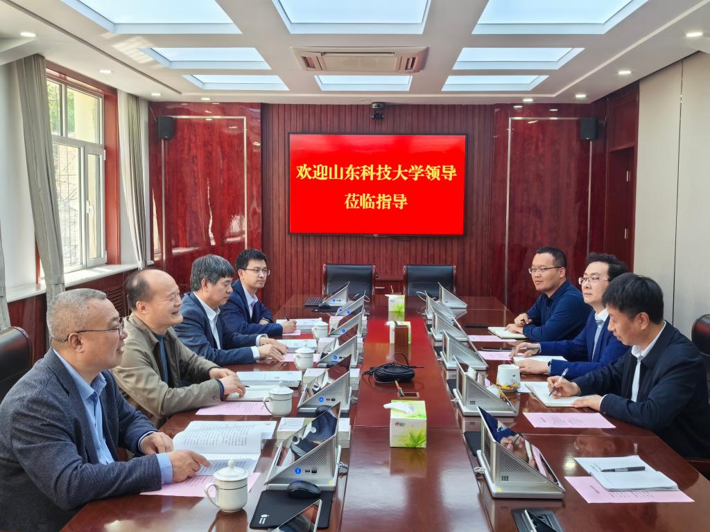 秦可对施宙一行的到来表示热烈欢迎,简要介绍了省工信院的基本情况、主要职能、工作成效及发展规划。他表示,省工信院高度重视与高校的交流合作,近年来,通过“山东工信智库联盟”与省内多所高校建立联系、开展活动并取得一定成效。下一步将充分发挥联盟平台作用,加强与山东科技大学的合作力度,在复合型人才培养、课题研究、科研管理、期刊创新等方面开展深入合作。