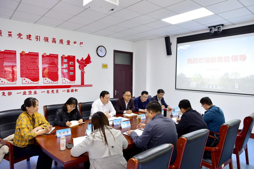 4月23日上午,校教务处处长樊建聪一行到yl23455永利调研。校区管委常务副主任郭加书、副主任兼教务部主任刘国栋、教务部副主任等参加座谈。