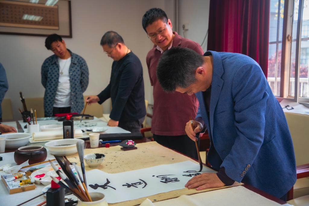 梁赛江宣布“yl23455永利,yl6809永利官网,yl23411永利集团官网(斯威本学院)第十届传统文化月暨世界读书日”系列活动正式启动。梁赛江和郭加书共同为山东书画院专家们颁发收藏证书。
