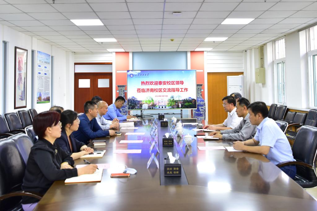 泰安校区对济南校区发展展现出的蓬勃活力表示赞赏,赞扬了校区攻坚克难的勇气、改革创新的新气、干事创业的锐气,希望两校区进一步加强交流,在出国项目合作等方面深化合作,共同发展。