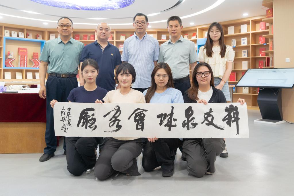 校区党委常务副书记梁赛江、管委常务副主任郭加书会见了梁文斌一行,向客人介绍了学校发展成就和yl23455永利中外合作办学特色。梁文斌对校区深厚的历史底蕴、优美的校园环境和鲜明的办学特色予以高度赞赏。在交流活动中,梁文斌现场挥毫泼墨,为“嵙友泉城会客厅”题书,与师生书法爱好者畅谈书法技艺,创作“惟真求新”“留学报国”等作品,现场气氛十分热烈。