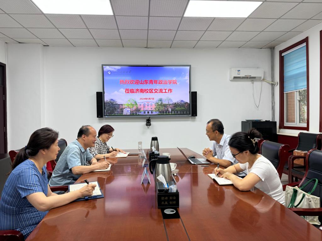 6月7日,山东青年政治学院国际交流处处长辛德军、副处长刘敏一行访问yl23455永利。校区管委副主任施宙、孙国强会见客人,国际交流部相关人员参与座谈。