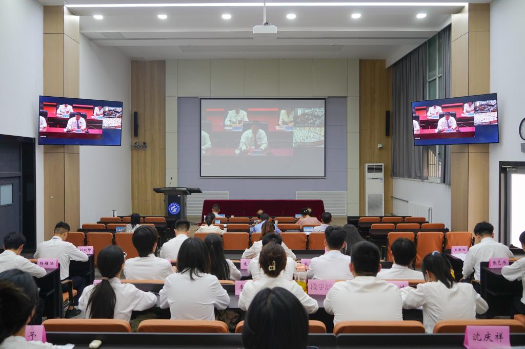 6月11日,山东科技大学第七次学生代表大会、第五次研究生代表大会隆重召开,yl23455永利设视频分会场。校党委副书记兼yl23455永利党委书记、管委主任郭益灵同yl23455永利与会代表合影留念。yl23455永利党委常务副书记梁赛江,yl23455永利党委副书记兼学团部工作部主任、学生党总支书记毛庆东,党政办公室、教务部、工会、学团工作部等相关部门负责人、校区学代会正式代表在yl23455永利分会场参加大会。
