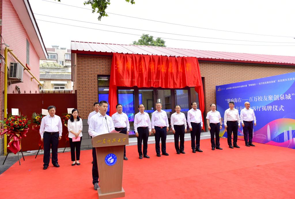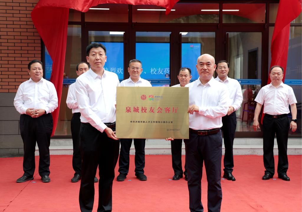 仪式上,赵辉授牌“泉城校友会客厅”。吴涛为校友颁发泉城校友“双招双引”大使聘书。