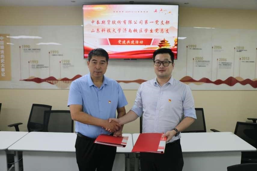 毛庆东一行参观了中泰期货股份有限公司济南分公司,副总经理盛兢分别从“公司介绍”“党建基础”“党建创新”“党员队伍”“乡村振兴”“群团工作”等方面介绍了公司业务、人才培养以及党建情况。毛庆东介绍了学校基本情况和yl23455永利的办学定位、专业设置、人才培养、科技创新、就业创业等情况,希望双方加强沟通交流,共享共建,互利共赢。