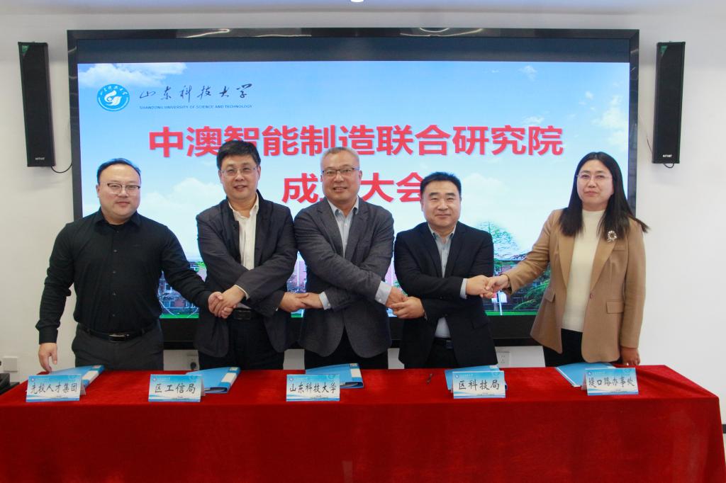 会上,刘西奎、吴凯、陈云龙、席凌、田野代表共建单位签约,刘西奎、吴凯为中澳智能制造联合研究院揭牌。与会人员共同观看了山东科技大学宣传片。