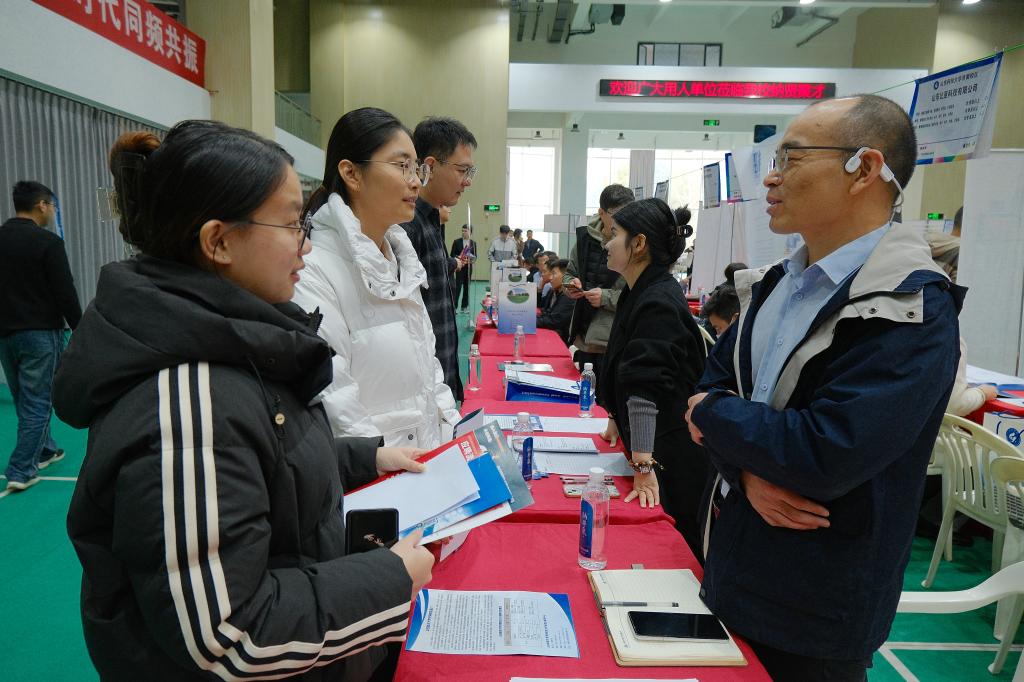 11月9日,yl23455永利举办“‘就’在今朝 ‘职’通未来” 2025届毕业生就业双选会。校党委副书记兼yl23455永利党委书记、管委主任郭益灵,校区党委常务副书记梁赛江,校区党委副书记兼学团工作部主任、学生党总支书记毛庆东,校区管委副主任施宙等深入双选会现场,与前来参会的招聘单位负责人、HR以及求职学生亲切交流,了解企业用人需求和学生求职意向,积极推介校区毕业生。校区各系主任、学生工作干部、2025届毕业生、低年级学生共计1000余人参加。