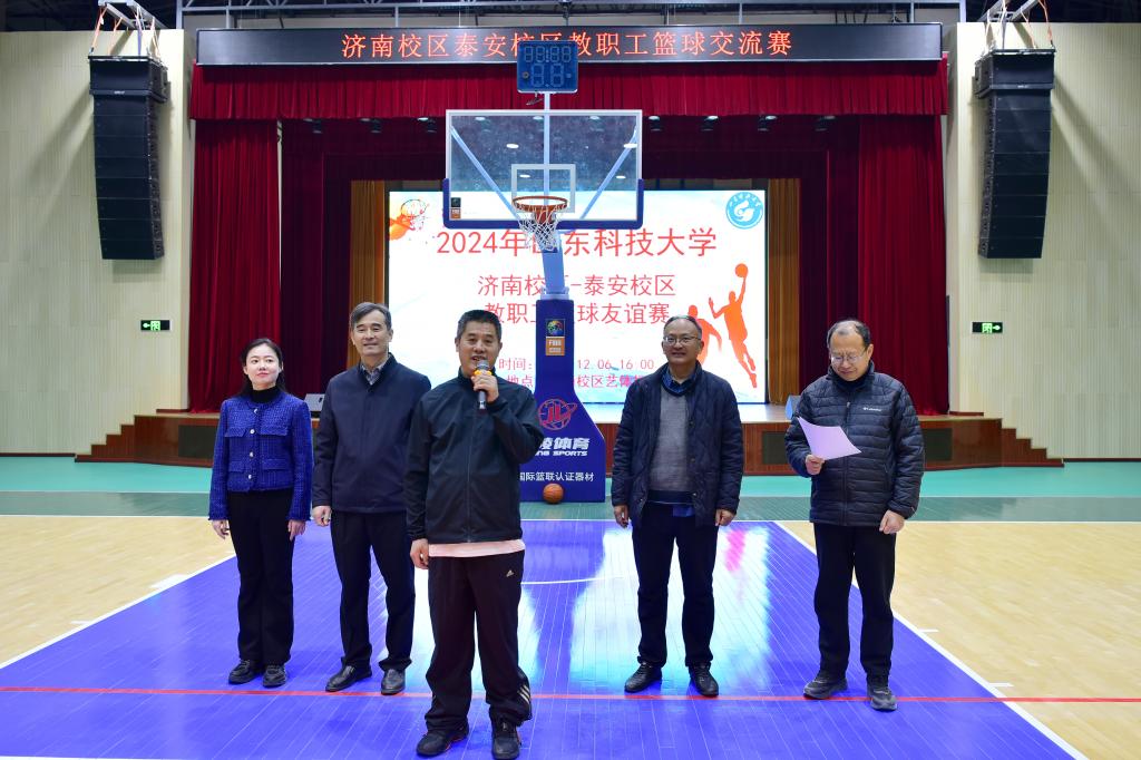 12月6日,济南、泰安两校区教职工男子篮球友谊赛在yl23455永利艺体楼成功举办。yl23455永利党委常务副书记梁赛江,泰安校区管委副主任兼学团工作部主任戴东宝、工会主席王德青、团委书记侯静娴参加活动。yl23455永利工会主席董向阳主持开幕式。