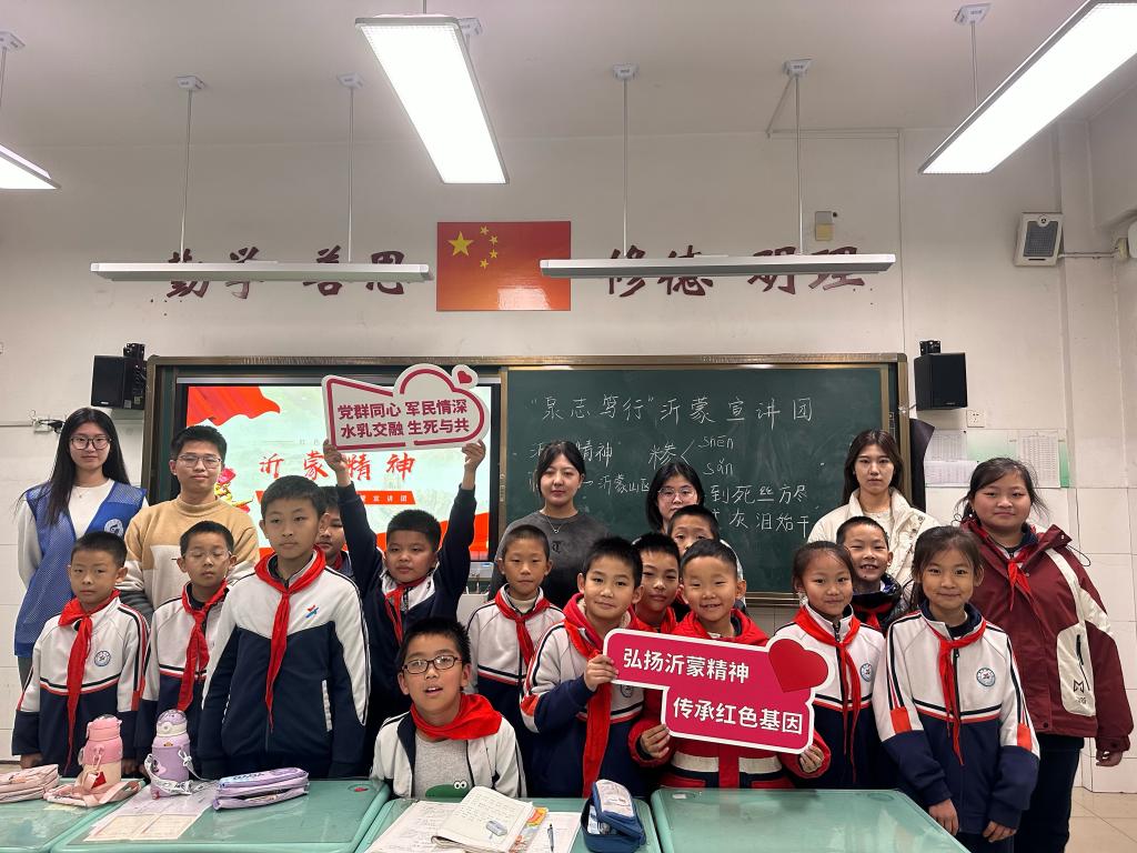 此前,宣讲团成员走进堤口路小学开展沂蒙精神志愿宣讲,以沂蒙精神、沂蒙红色故事及新时代临沂发展变化等为宣讲内容,巧妙融入击鼓传花游戏,在轻松愉悦又充满教育意义的氛围里,让少年儿童深入体会沂蒙精神的深刻内涵。