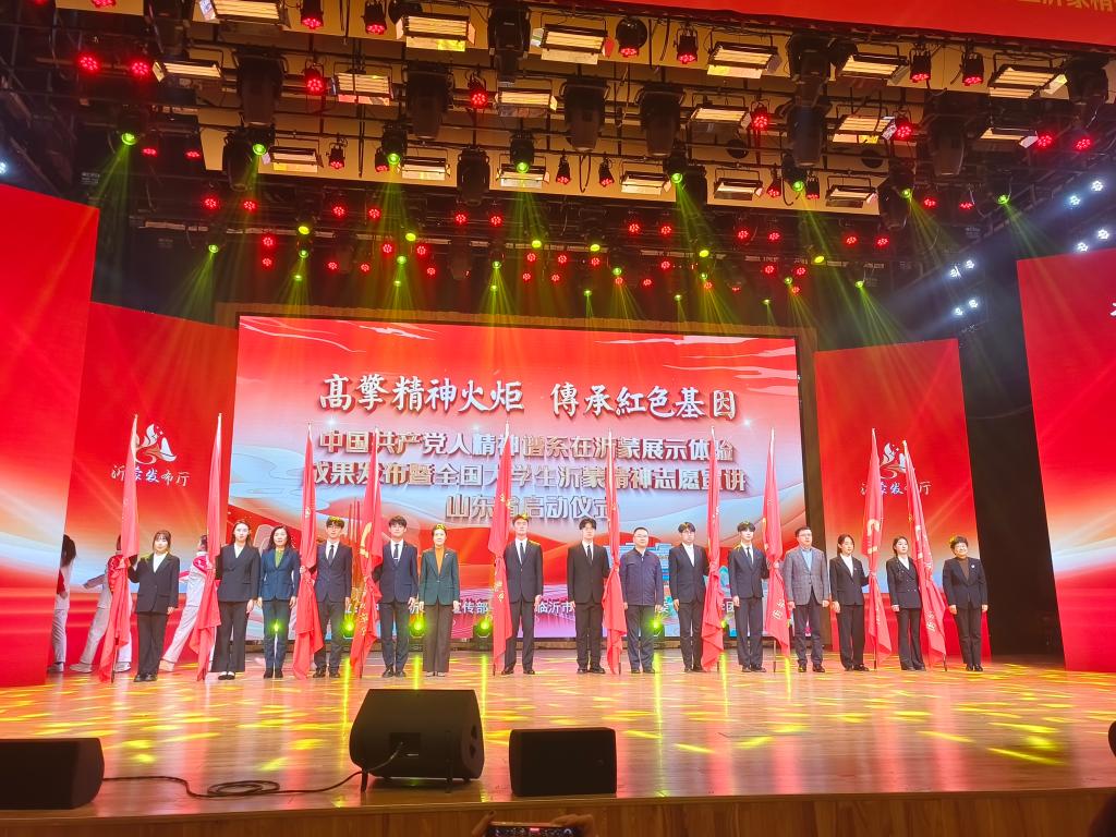 活动现场,“泉志笃行”沂蒙宣讲团和“泉音嵙韵”沂蒙宣讲团成员代表登台接受授旗,团队成员与来自全省的400多名大学生志愿宣讲代表一起,聆听沂蒙精神的动人故事,体验感悟党群同心的深刻内涵。