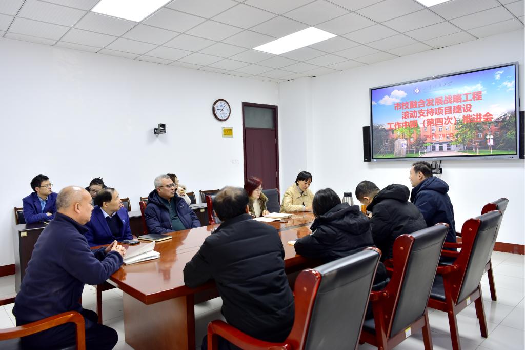 12月23日上午,校区召开市校融合发展战略工程滚动支持项目建设工作中期推进会,校区管委常务副主任郭加书主持会议,市校融合建设项目专班成员参加会议。
