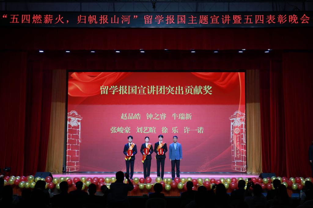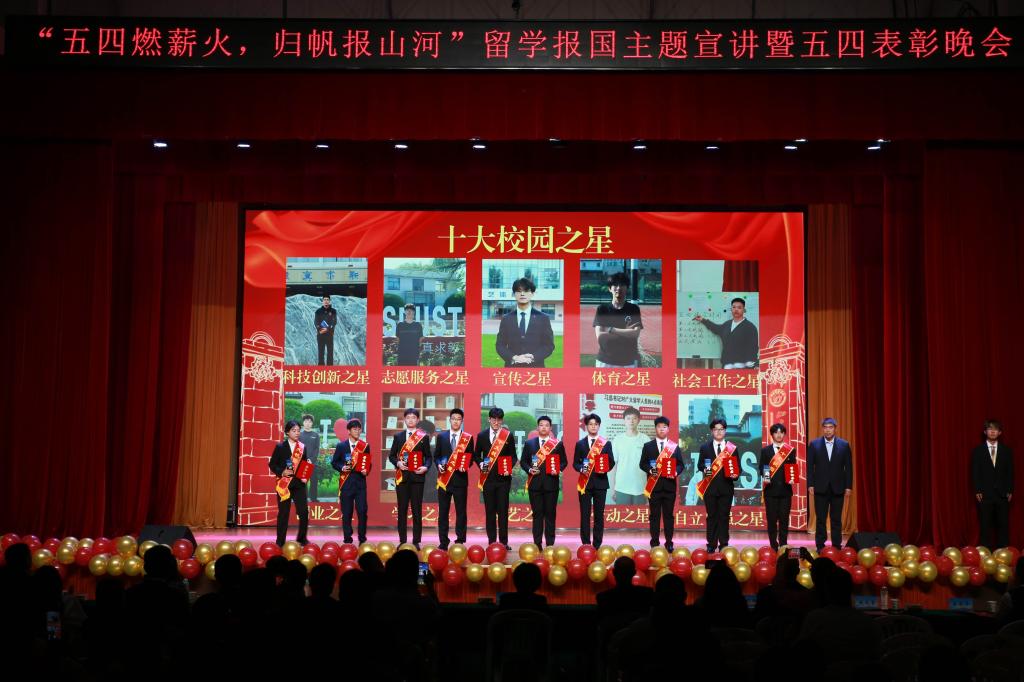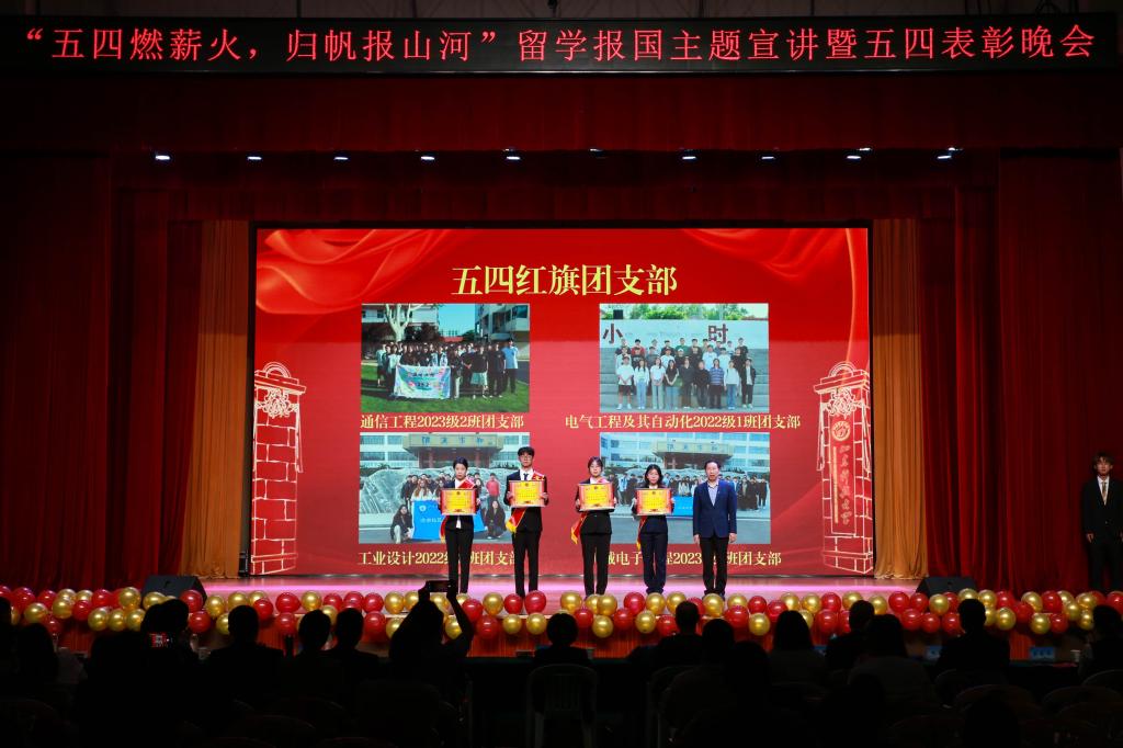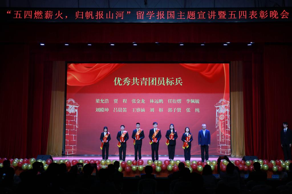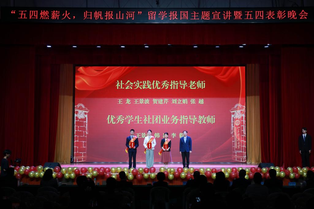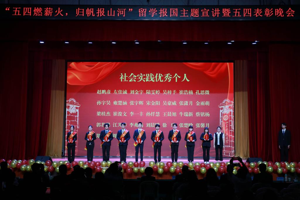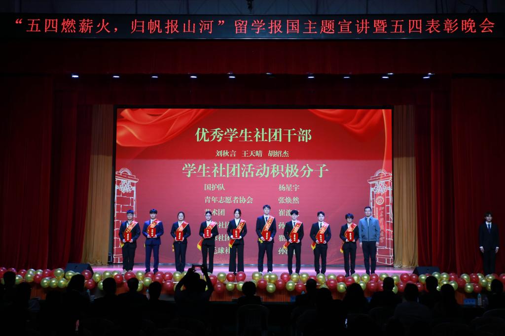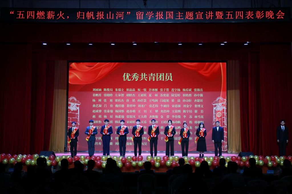 5月11日晚,yl23455永利在艺体楼隆重举行“五四燃薪火 归帆报山河”2025年留学报国主题宣讲暨五四表彰晚会。校党委副书记兼yl23455永利党委书记、管委主任郭益灵,校区党委常务副书记梁赛江,管委常务副主任郭加书,党委副书记兼学团工作部主任、学生党总支书记毛庆东,管委副主任刘西奎以及相关部门负责人出席活动。全体学生工作干部、教师代表、受表彰的先进集体与先进个人代表、团员青年代表等参加活动。