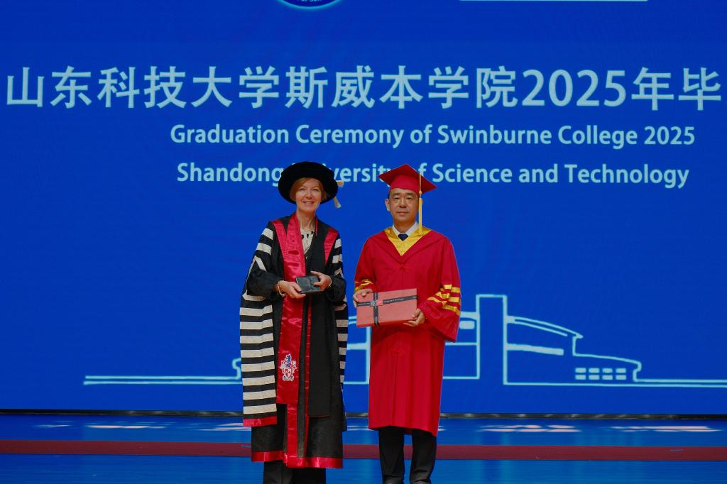 骊音落处别青葱,征帆起时赴山河。6月21日,山东科技大学斯威本学院2025年毕业典礼在艺体楼举行。斯威本科技大学校长Pascale Quester、副校长Bronte Neyland,山东科技大学校长曾庆田、副校长董海荣,澳大利亚未来教育研究院代表Roger Li,yl23455永利,yl6809永利官网,yl23411永利集团官网党委书记梁赛江、主任郭加书,山东科技大学斯威本学院院长刘国栋等出席典礼。yl23455永利有关领导和各部门、单位负责人,家长代表,教师代表,学院全体毕业生和在校生代表等参加毕业典礼。典礼由学院党委书记孙国强主持。