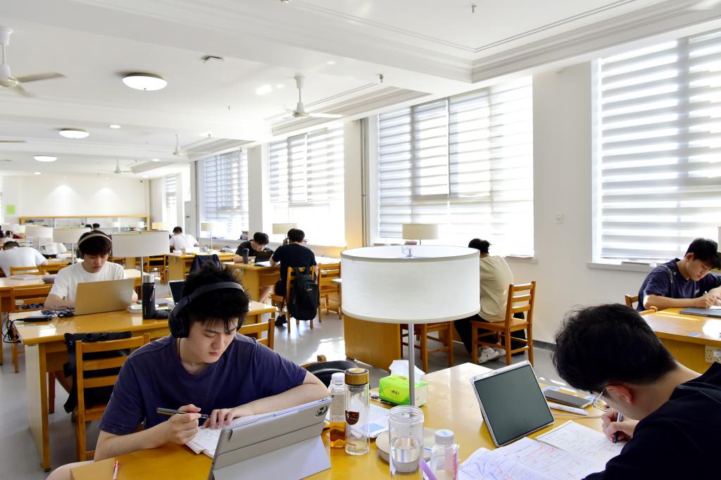 同学们在图书馆认真学习