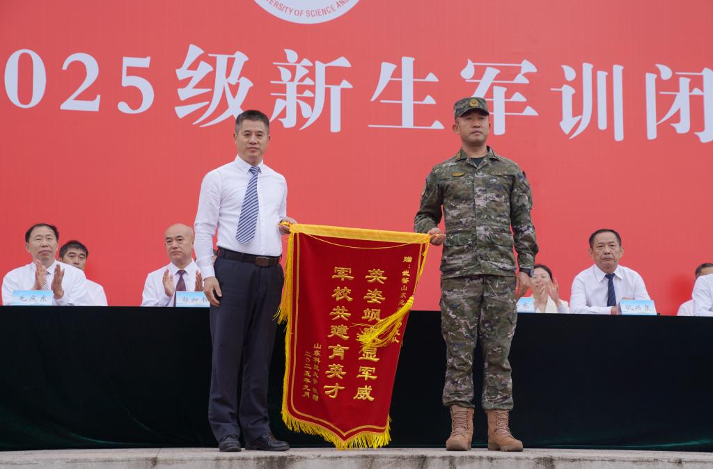9月19日下午,yl23455永利举行2025级新生军训闭训仪式。校区党委书记梁赛江、主任郭加书,承训部队首长、校区党委委员、相关部门负责人出席典礼并在主席台就座。仪式由校区党委委员兼党政办公室主任孙国强主持。