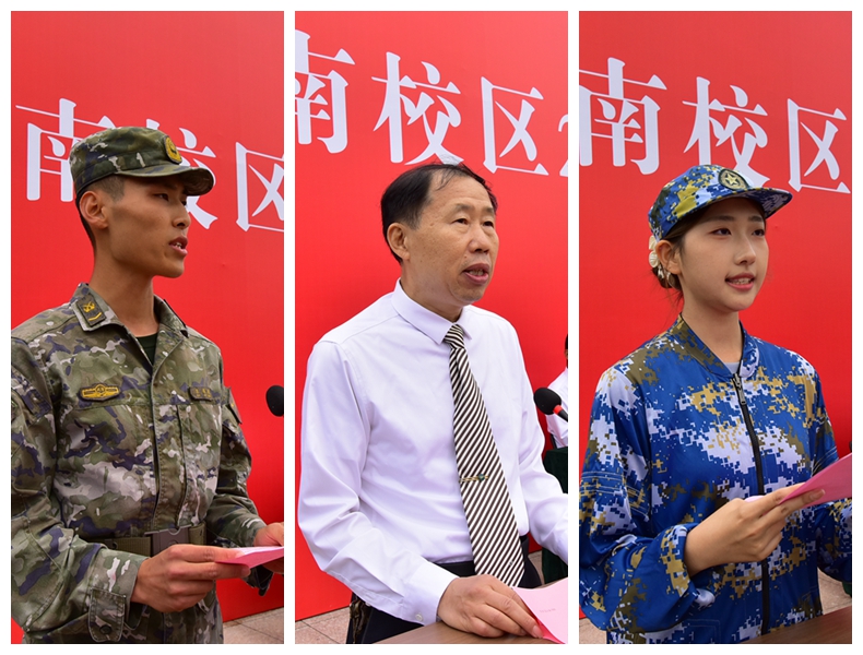 军训教官代表袁锦程、新生代表尚静菲分别发言,表达了对参训新生的肯定与祝福,分享了军训期间的感悟与收获。