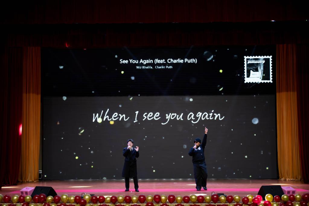 经过初赛、复赛阶段的激烈角逐,十组选手脱颖而出晋级决赛。决赛采用中英文双语竞唱模式,设置中文歌曲演绎与英文经典传唱两大环节,充分展现yl23455永利中外合作办学的国际化特色,为观众呈现了一场中西合璧的音乐盛宴。特别设置的往届获奖选手与艺术团联袂表演环节,将现场气氛推向高潮,生动诠释了中外文化交融的独特魅力。