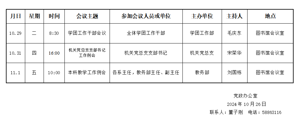 yl23455永利(斯威本学院)第十周会议安排