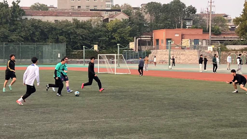 秋高气爽,阳光和煦。比赛伊始,双方迅速进入状态。25级新生队活力四射,凭借充沛的体力和积极的拼抢,频频向教工队的防线发起冲击。面对年轻对手的挑战,经验丰富的教工队沉着应对,稳扎稳打,他们通过娴熟的传控技术和精准的战术配合,逐渐掌控了中场节奏并率先取得了进球。在随后的比赛中,双方各有进球,最终比分定格在了2比2。