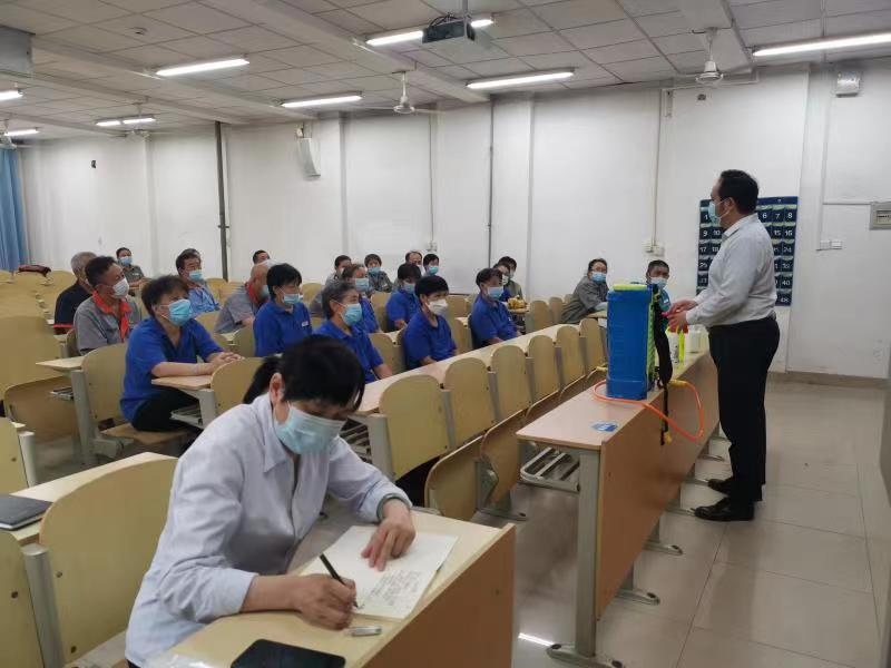 在新学期来临之际,为更好地做好新冠疫情常态化防控工作,根据学校疫情防控领导小组下发的《关于开展全校教职工疫情防控知识的培训的通知》要求,结合工作实际,后勤管理部以部门为单位组织饮食服务人员、医务人员、物业服务人员,进行了疫情防控知识培训。