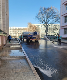 组织宏泰物业公司按照部署要求,落实校园环境卫生防疫措施,积极开展爱国卫生清洁消毒专项行动。