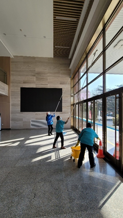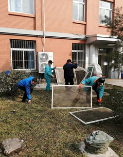 新学期开学前物业公司组织人员对东西办公楼、教学主楼、学生宿舍等公共区域进行全方位无死角、地毯式清扫,对各楼宇间草坪上的杂物枯树枝进行集中清理,保证楼宇外、草坪整洁干净;清理下水道口杂草,保证下水道顺畅。大家不惧脏臭,携带铁锹、钳子、布袋和扫把等工具捡拾垃圾,对于比较窄小的阴沟,不方便使用工具的,员工索性就将双手伸到阴沟里,徒手捧起一团团包着污泥的落叶和杂物,将垃圾清理干净。