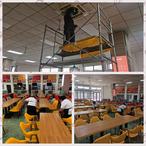餐饮服务是校园食品安全的重中之重。2月21日,后勤管理部委托专业机构对二次供水蓄水池进行全面清洗消毒,对食堂末梢端水龙头进行取水检测,对公共饮水机进行更换滤芯并彻底消毒,对餐厅空调进行清理消毒。24日,后勤管理部重点检查了餐饮公司员工培训记录、安全卫生管理、食品安全突发事件和食物中毒应急处置预案、制度上墙情况、从业人员健康证办理情况、消防设施、食品添加剂使用及管理要点;对开餐后餐具清洗消毒,以及食堂环境、操作间环境卫生、食品留样及记录、防四害措施、设备安全、燃气设施、用电安全等项目提出具体要求;通过检查督促餐饮公司提高主体责任意识,努力改善餐饮经营环境,保障师生食品安全。