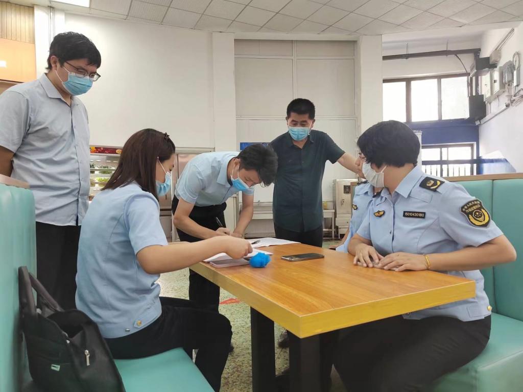在学生餐厅检查人员重点检查了餐饮公司员工培训记录、场所码张贴、安全卫生管理、食品安全突发事件和食物中毒应急处置预案、制度上墙情况、从业人员健康证办理情况、消防设施、食品添加剂使用及管理要点、餐具清洗消毒,以及食堂环境、操作间环境卫生、食品留样及记录、防四害措施、设备安全、燃气设施、用电安全等项目。