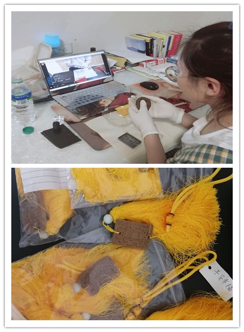 6月17日晚19:00,中国传统独立制香人、高级调香师周少坤受邀为学生线上授课,教授制作传统香牌技艺。参与学生从准备香粉、粘合剂、宣纸、香牌模具、脱模油,到混合香粉、滴水成团、压模脱模、修边打孔,再到去裂痕、涂抹脱模油、调整香牌的形状边缘等加工,经过层层制作步骤,香牌初具雏形,经过多天风干以及再次打磨、穿绳装饰后,历时五天的制作过程全部完成。活动中,学生还了解到龙涎香、桂花、丁香等中国传统香料的深厚历史和药用价值,体验到中华传统香文化的博大精深。