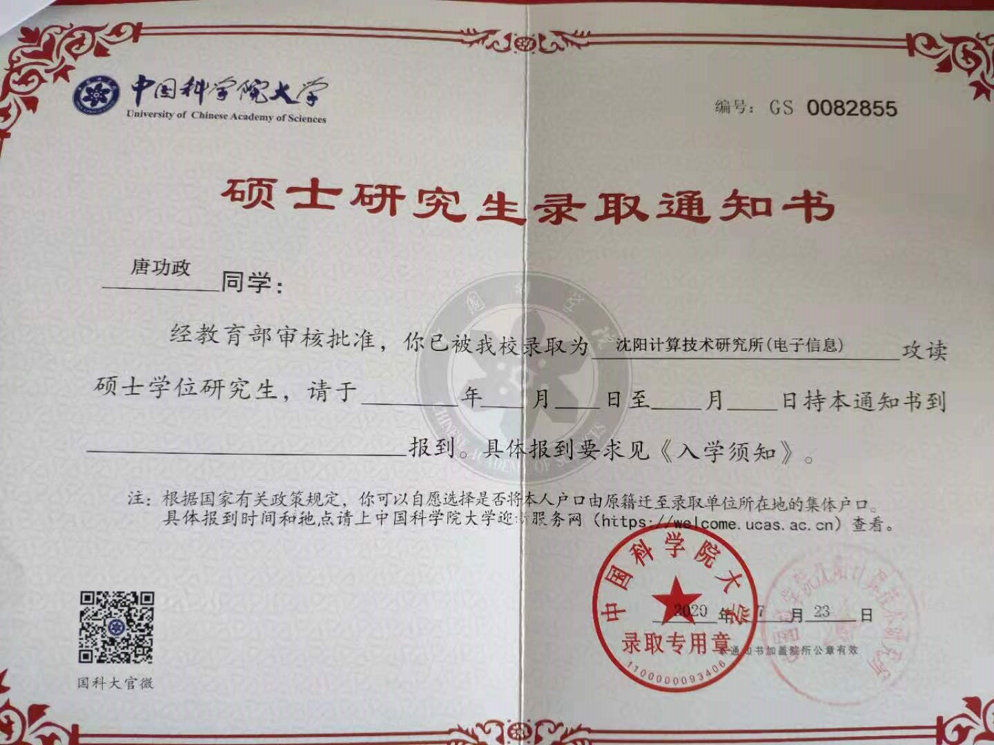 作者简介:唐功政,yl23455永利,yl6809永利官网,yl23411永利集团官网电气信息系2020届毕业生,信息管理与信息系统专业,于2020年考取中国科学院大学的计算机技术专业硕士研究生。长期以来,在思想觉悟,学习科研,学生工作等方面,严格要求自己,勤奋刻苦,脚踏实地。先后获得山东科技大学“三好学生”、“优秀学生干部”、“优秀毕业生”等荣誉称号。