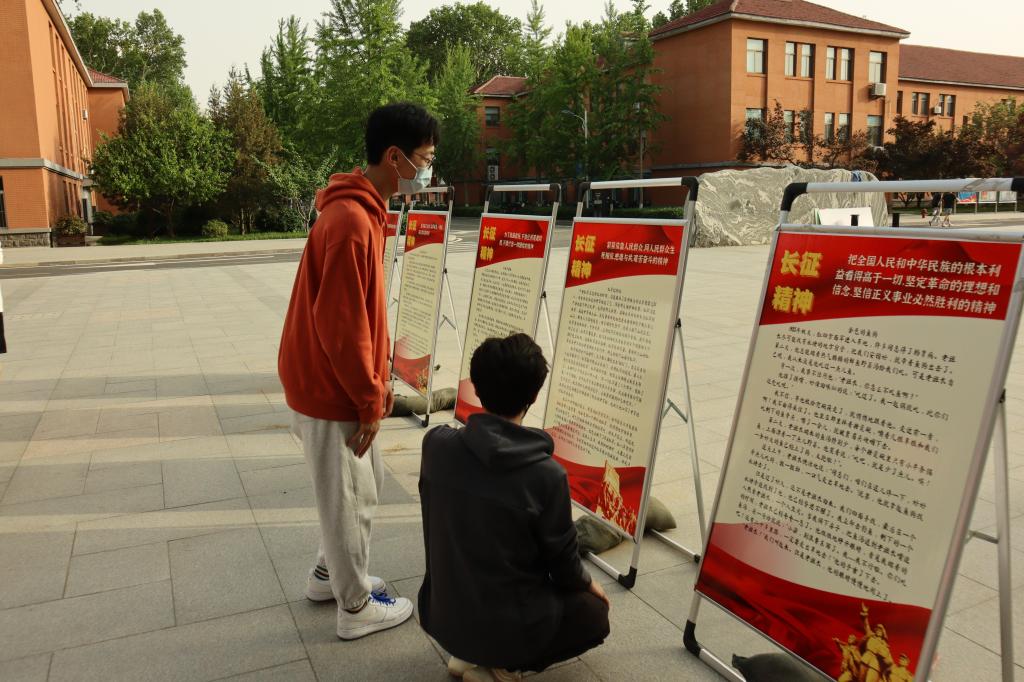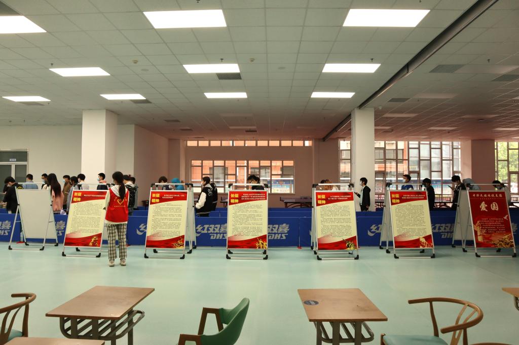 本期展示内容以爱国主义和工匠精神为主,以宣传展板的形式在校园内展出。爱国主义宣传板块展示了长征精神五大内涵,即革命理想高于天的忘我牺牲精神;敢于战胜一切敌人而不被敌人所屈服的革命英雄主义精神;顾全大局、紧密团结的集体主义精神;坚韧不拔、百折不挠的艰苦奋斗精神;一切从实际出发,坚持走自己道路的求实创新精神。工匠精神,是以爱国主义为核心的民族精神和以改革创新为核心的时代精神的生动体现,是鼓舞全党全国各族人民风雨无阻、勇敢前进的强大精神动力。展板展示了在平凡岗位上创造出不平凡业绩的劳动者的故事。丰富的照片,生动的文字,引得不少师生认真观看,驻足讨论。