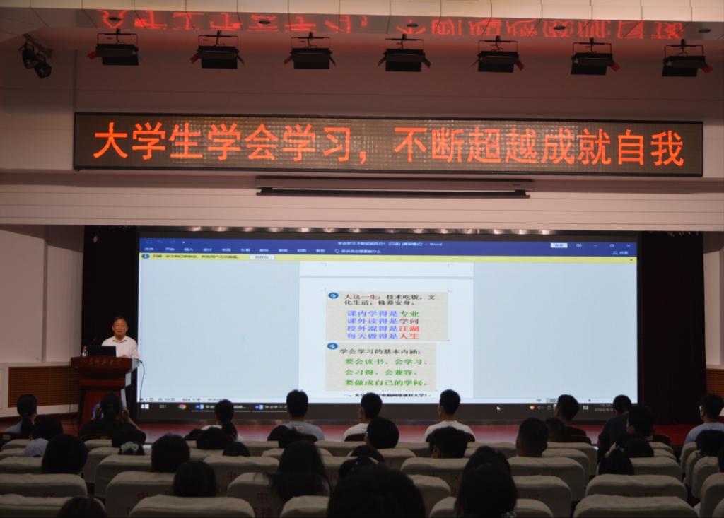 郭教授以《学会学习,不断超越成就自我》为主题,与学生们展开了亲切的交流。郭教授由“大学生如何学会学习”等问题引发大家思考,指出大家应惜时如金,珍惜青春年华。郭教授从“大学的三种学习方式相辅相成”、“用虚补实,利用网络提升自己的综合学问和人文艺术修养水平”以及“师生友爱利于学习,电脑网络课堂是助力检验学习的最佳途径”三个方面进行详细讲解,指出合理使用电子设备的重要性,建议学生正确利用电子设备读好大学,并向大家推荐了360个人图书馆、超星学术网、网易公开课等有利于大学生成长成才的网站。