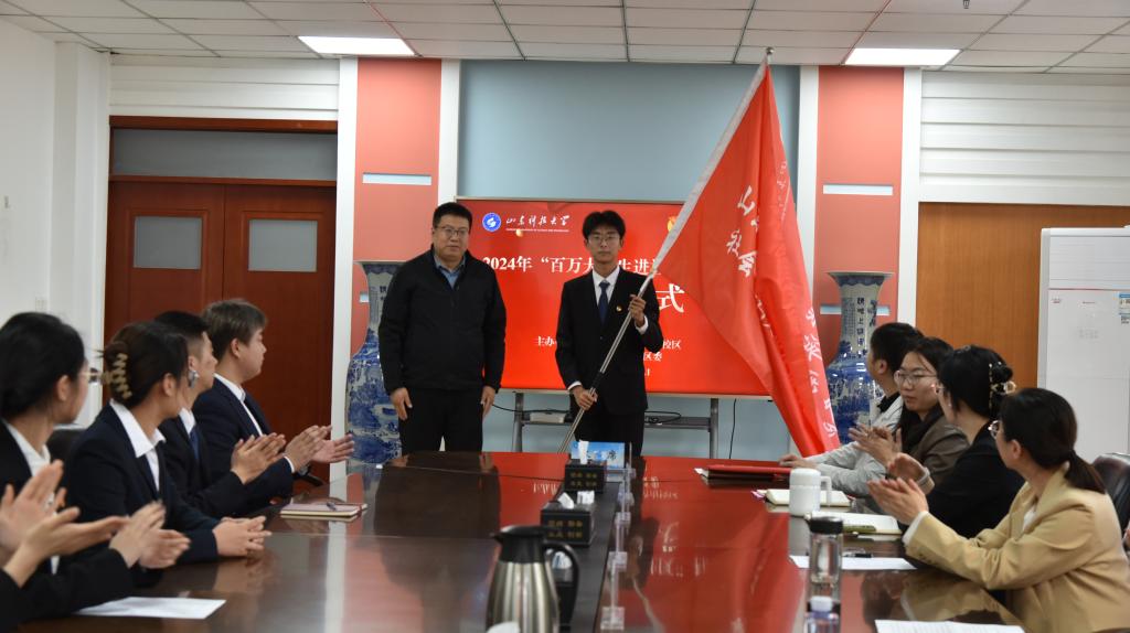 启动仪式上,范文亮为“百万大学生进社区”专项行动青年志愿者服务队授旗,社会实践指导教师代表与世贸天城中心北社区签署共建协议,学生代表邢竹秀发言。启动仪式结束后,学生代表一同参观了官扎营街道世贸天城中心北社区和“1922电竞新媒体产业园”。