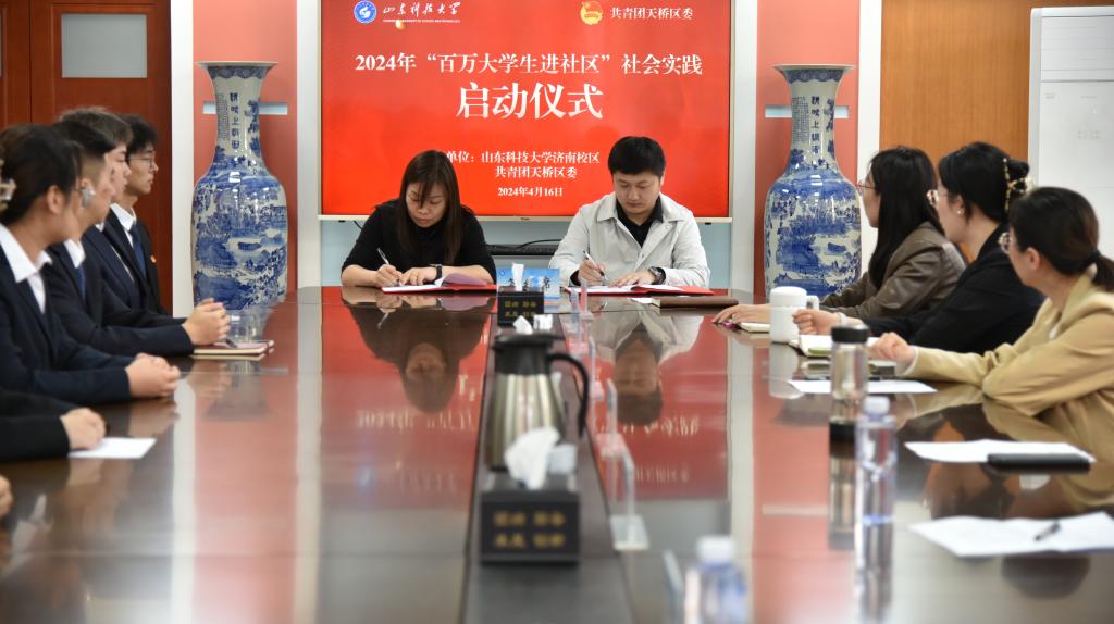 为进一步深化共青团实践育人工作,统筹校内外各方力量助力大学生参与到基层社会实践,4月16日,yl23455永利联合共青团天桥区委共同举行2024年“百万大学生进社区”社会实践启动仪式。团区委书记范文亮,校区党委副书记兼学团工作部主任、学生党总支书记毛庆东出席启动仪式。校团委副书记、校区学团工作部副主任韩冰主持仪式。天桥区相关街道负责同志,济南校区相关学团工作干部、学生代表等参加启动仪式。
