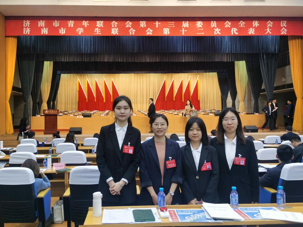 4月17日,济南市青年联合会第十三届委员会全体会议和济南市学生联合会第十二次代表大会在舜耕会堂开幕。来自全市各族各界的300名青联委员和200名学联代表参加本次大会。yl23455永利学生会主席刘博涵、工业设计2021-1张银凤、通信工程2021-1杨悦琳作为正式代表参加了会议,校团委副书记、yl23455永利学团工作部副主任韩冰列席会议。