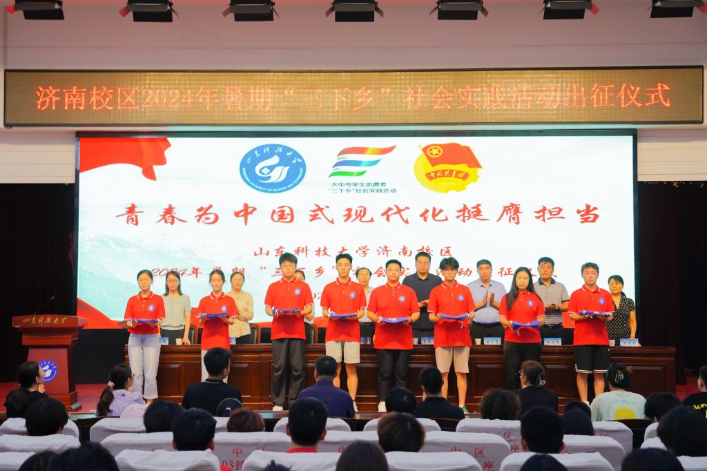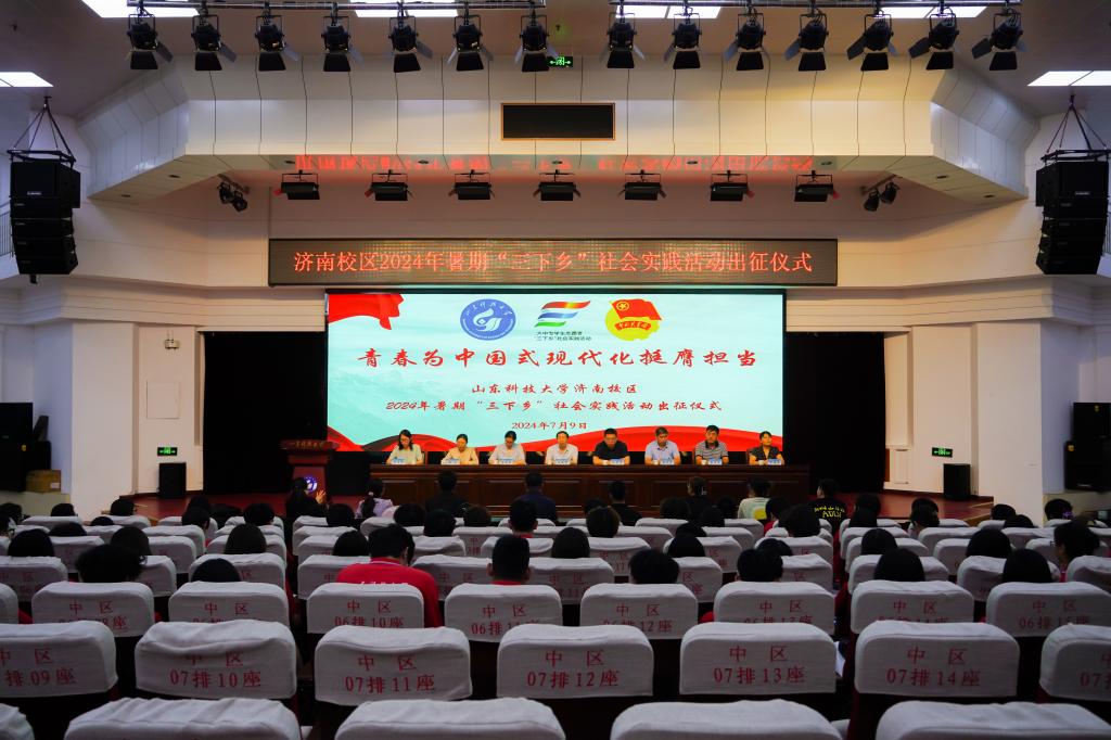 7月9日下午,yl23455永利2024年暑期“三下乡”社会实践活动出征仪式在图书馆报告厅举行。共青团天桥区委书记范文亮,yl23455永利党委副书记毛庆东出席,校区相关部门负责人、全体学生工作干部及“三下乡”社会实践重点团队师生代表100余人参加。