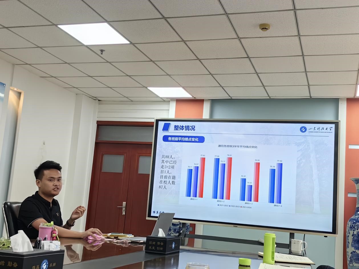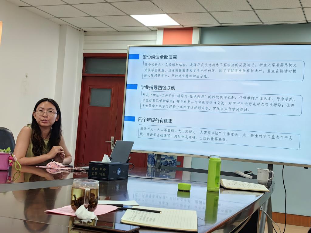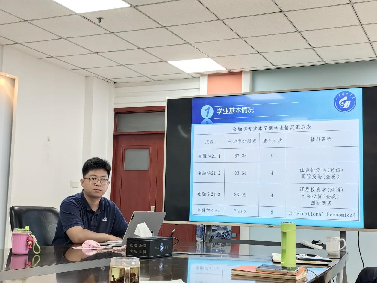 会上,各辅导员全面总结了所带学生班级整体情况,客观呈现了班级间、专业间、宿舍间以及前后学期之间的学习成绩情况,认真剖析了学风建设班级整体情况、个体案例及其产生原因,针对短板弱项准确提出了下一步实施方案和具体安排。马国超、张越、陆刚对毕业班就业意向进行了详细分析,提出“分类分层指导与学业规划引导相结合、政策解读宣贯与访企参观相结合、高质量就业与风险预判相结合”等工作思路;王景波、陈芳州、卓国梁一一列举了2023级进步和退步较大学生学习成绩、遵规守纪、课堂表现等情况,总结了前期“一对一”学习帮扶小组、宿舍内学习讨论小组等工作经验,强调基础文明建设对学风建设具有积极作用和深远意义,对解决好“为什么学”“怎么学”“以什么样的状态学”三大问题提出具体办法;周亚玲、王龙、刘梦昕聚焦2022级班级学风特点、整体变化规律、集体与个体关系,提出氛围营造、制度管理、问题击破、诚信教育等实施措施,确保低年级到高年级顺利过渡;马力从“时、度、效”三方面展望了新生班级学风建设规划,强调要在“时”上下功夫,在“度”上布新局,在“效”上寻突破;魏寿美回顾了2024届毕业生就业和深造情况,针对金融学专业所取得“深造率达51.35%”成绩进行了经验分享,提出留学规划要“早启动、早谋划、早行动”;滕亚鹏总结归纳了泰国格乐项目学生特点,分析了各类学生接受教育的实施路径,并提出强化规矩意识、增强集体凝聚力、建强学生干部队伍等措施。
