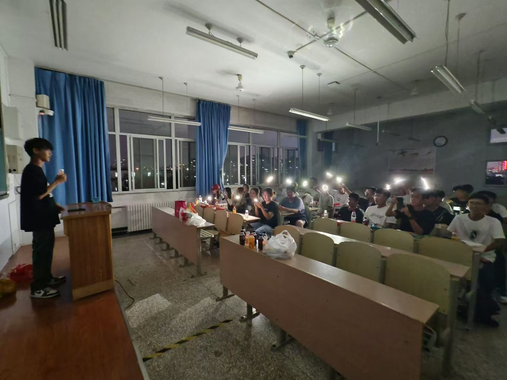 有的班级组织开展趣味团建,同学们各显才艺,纷纷上台分享自己的科大初体验,畅谈融入科大大家庭的喜悦与憧憬;有的班级举办了小型中秋晚会,载歌载舞,欢度佳节;有的班级准备了猜灯谜、飞花令等极具中国传统节日特色的活动,让同学们体会浓浓的中秋韵味;有的班级定做了蛋糕,给当天过生日的同学共同庆祝。还有学生家长亲手制作了月饼、蛋黄酥等,让离家的学生感受到浓浓的亲情。