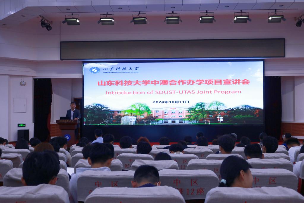 为帮助2024级学生更好地了解中澳合作办学项目、合理规划大学四年的学习生活,10月11日下午,yl23455永利在图书报告厅举办山东科技大学中澳合作办学项目宣讲会。宣讲会由yl23455永利学团工作部副主任鲍万杰主持,AEMG教育集团山科项目分部主任王乙良、电气工程系蒲海涛教授、通信工程系主任杨金梁分别为电气工程及其自动化、通信工程专业的同学进行项目宣讲和专业介绍,电气工程系、通信工程系的部分老师和全体2024级中澳合作办学项目专业学生参加宣讲会。